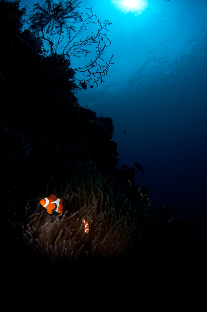 설명: 밋밋한 접사에 배경 라이트를 보이도록 하여 그로 인해 주 피사체가 돋보이도록 할 목적으로 촬영하였습니다. 촬영과정에서 힘든 점은 움직이는 피사체 때문에 배경 라이트의 위치를 계속 바꿔줘야 했다는 겁니다. 그 와중에 스눗(Snoot)까지 같이 따라 움직이다 보면 정말 많은 시간을 필요로 합니다. 따라서 얕은 수심에서의 충분한 연습이 필요합니다. 또한 촬영 시 유의할 점은 부드러운 배경 라이트의 표현을 위해 조리개의 개방이 필요합니다.