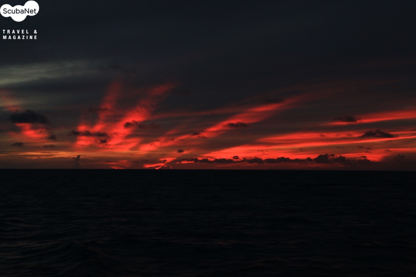 콰젤란에서 비키니로 가는 중간에 월다이빙을 즐기는 다이버들