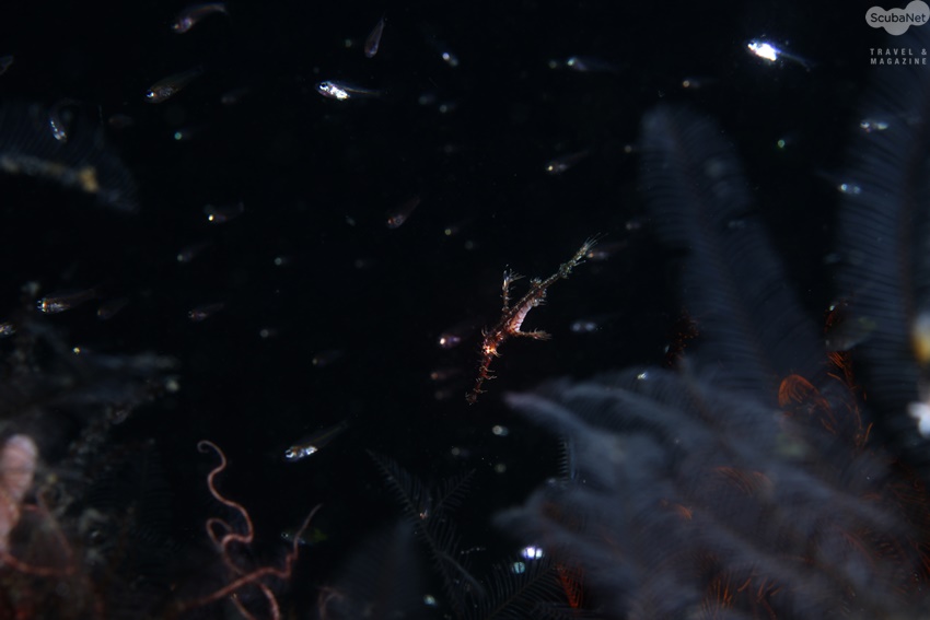 가장 자주 보이는 것 중의 하나는 검은 색계통의 할리퀸 고스트 파이프 피시인데 촬영 후 결과물은 대부분 포토제닉하지 않다 non photogenic는 것을 고려해야 한다.