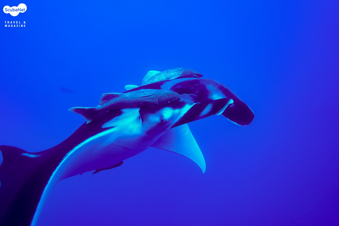 자이언트 패시픽 만타와 레모라들. F3.5, 1/400s