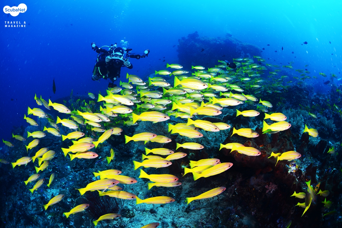 옐로우스내퍼 무리와 다이버