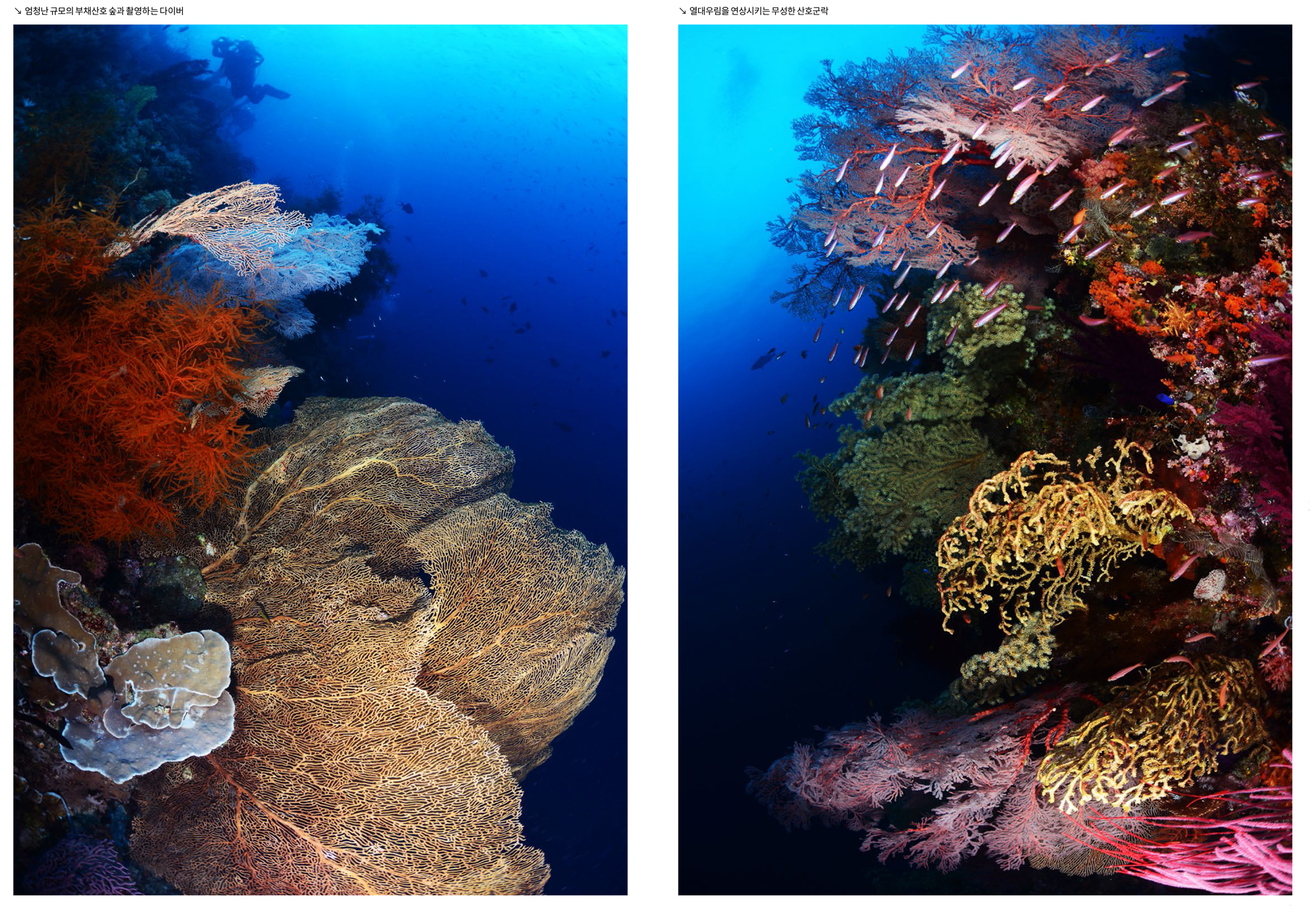 절벽을 장식한 화려한 부채산호 군락