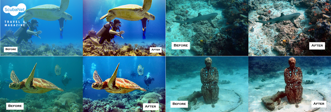 보정된 수중사진 전과 후(다이브로이드에서 제공한 사진이다.)