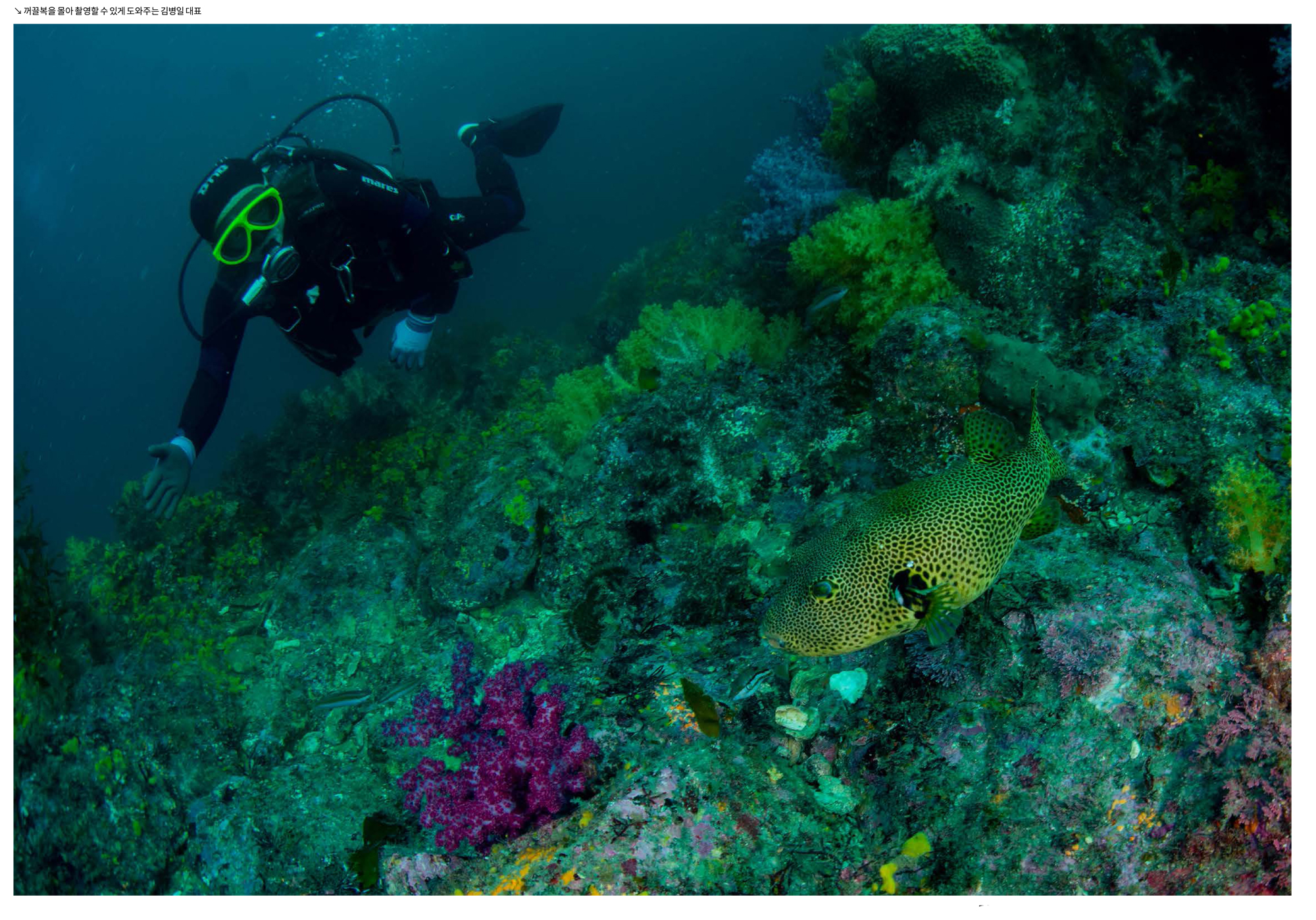 문섬 새끼섬의 화려한 수지맨드라미산호군락과 김병일 대표