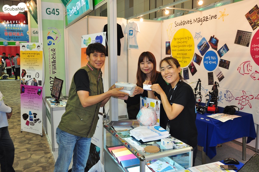 이렇게 사전에 준비하고, 홍보한 덕분에 스쿠버넷 부스에는 항상 다이버들이 찾아와 북새통을 이루었다. 굳이 경품 이벤트 때문 만이 아니라 다이버로서, 페이스북 친구로서 서로 인사를 하며 교류하는 소통의 장 역할도 했다.
