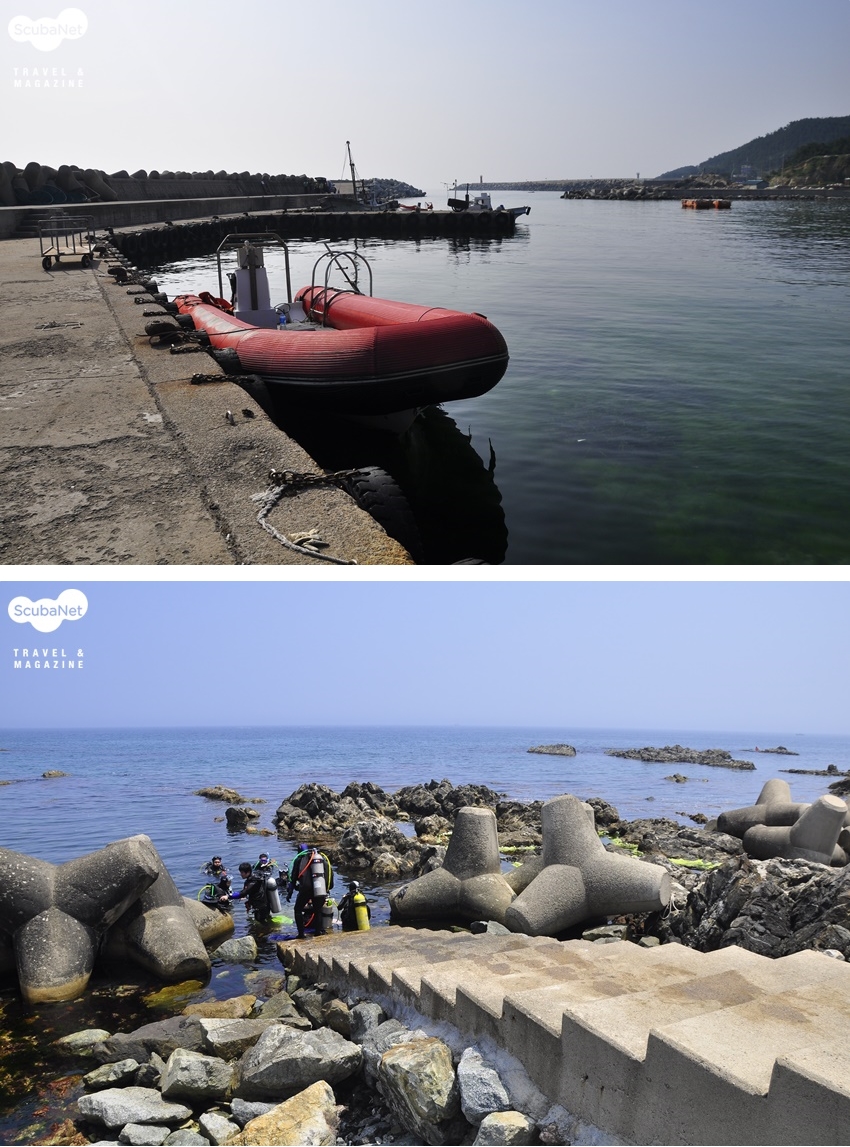 다이빙은 리조트에서 장비를 준비해 차로 1~2분 거리인 직산항으로 이동해 시작하게 된다. 리조트 바로 앞에서 배에 탈 수 있는 환경은 아니지만 항상 많지 않은 인원이 여유롭게 다이빙을 준비하기 때문에 큰 불편은 아니다. 오히려 바다를 보며 달리는 시간을 즐기는 다이버들이 많다.